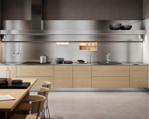 Открытые кухонные шкафы из нержавеющей стали